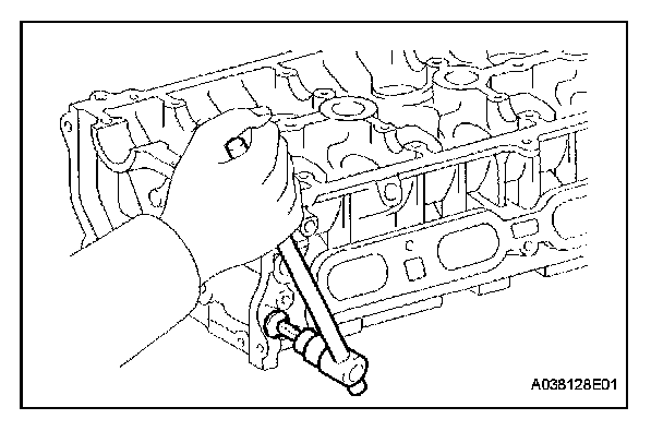 (a) Using a 10 mm socket hexagon wrench, install the taper screw plug with a new gasket.
