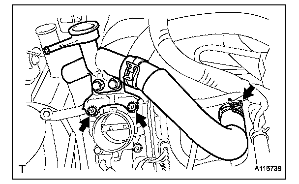 (b) Remove the 3 bolts and 2 nuts and remove the intake manifold.