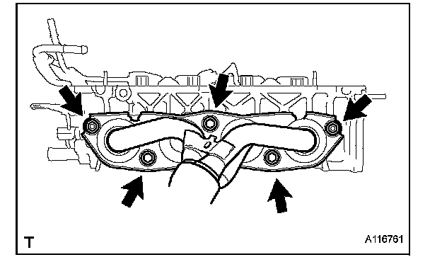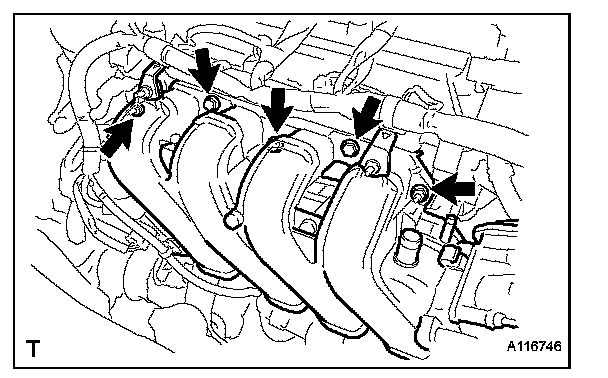 (a) Remove the 3 bolts and 2 nuts and remove the exhaust manifold.
