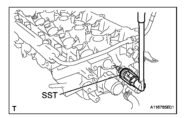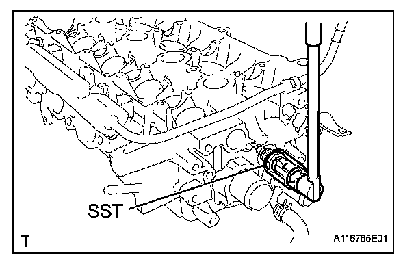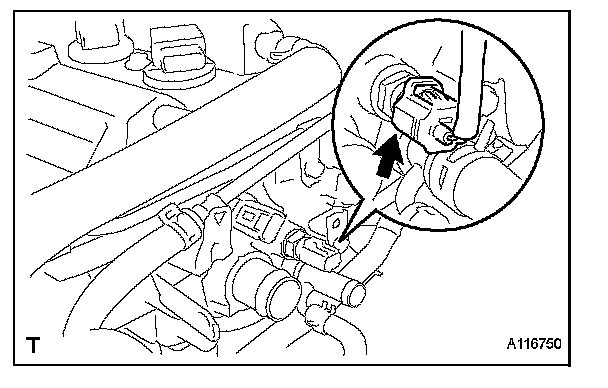 (a) Using SST, remove the engine coolant temperature sensor connector.