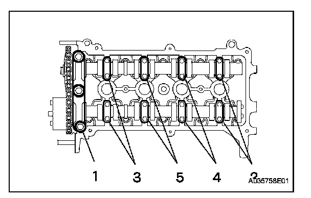 NOTICE: Loosen each bolt uniformly while keeping the camshaft level.