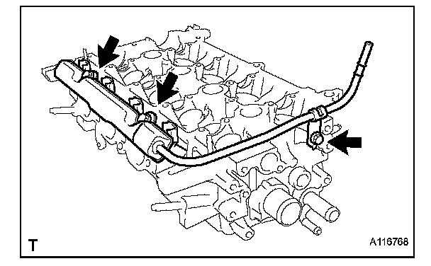 (a) Remove the 3 bolts and remove the fuel delivery pipe sub-assembly with 4 fuel injectors.