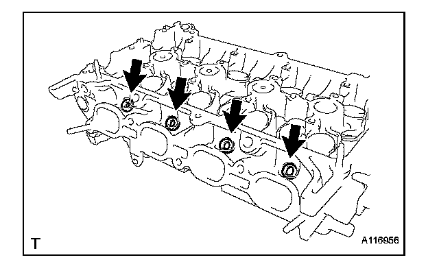 (a) Install 4 new injector vibration insulators onto the cylinder head.