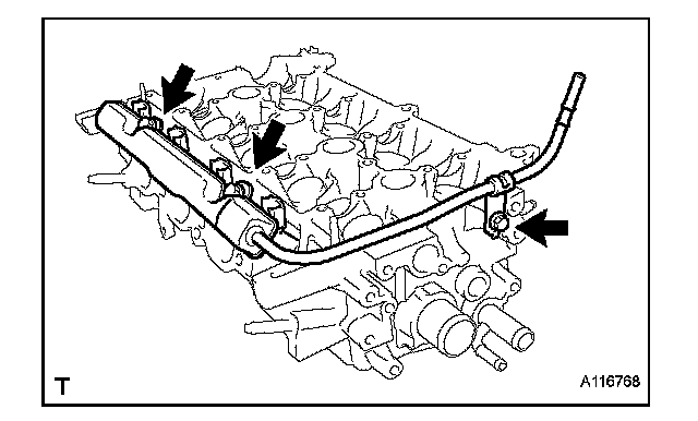 NOTICE: Do not drop the fuel injectors when removing the fuel delivery pipe sub-assembly.
