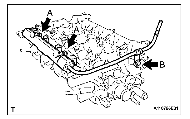 (a) Provisionally install the fuel delivery pipe subassembly with the 4 fuel injectors using the 3 bolts.