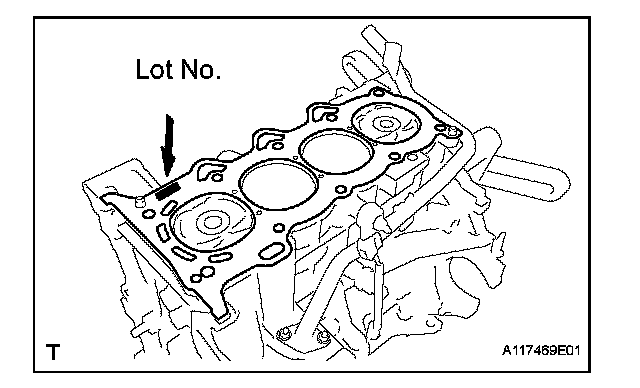 (a) Place a new cylinder head gasket on the cylinder block with the Lot No. stamp facing upward.