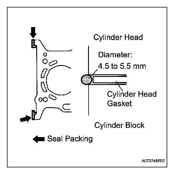 (f) Apply a continuous bead of seal packing (Diameter 4.5 to 5.5 mm (0.177 to 0.217 in.)) as shown in the illustration.