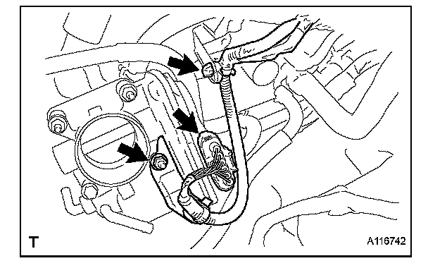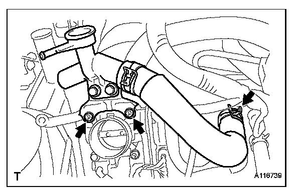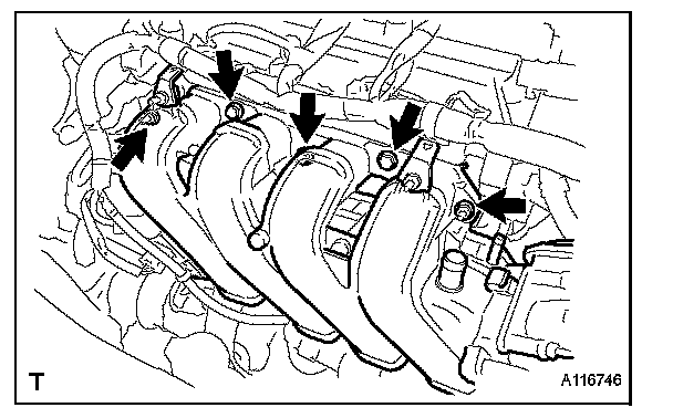 (b) Install the intake manifold with the 3 bolts and 2 nuts.