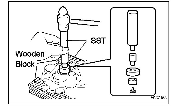 (a) Using SST and a hammer, tap in a new oil seal until its surface is flush with the timing chain cover edge.