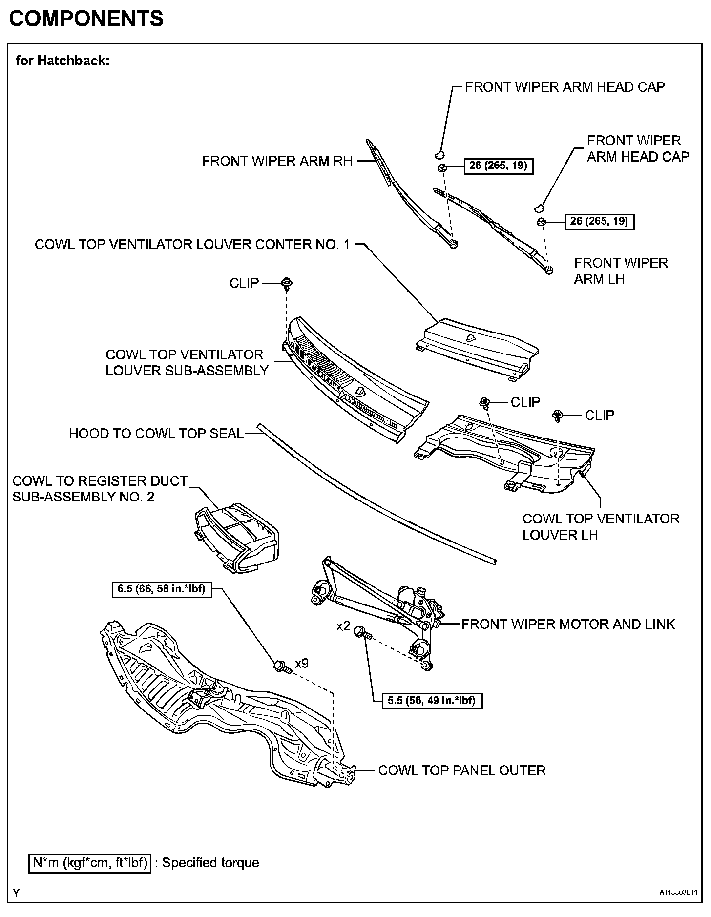 22. REMOVE COWL TOP PANEL OUTER (for Hatchback)
