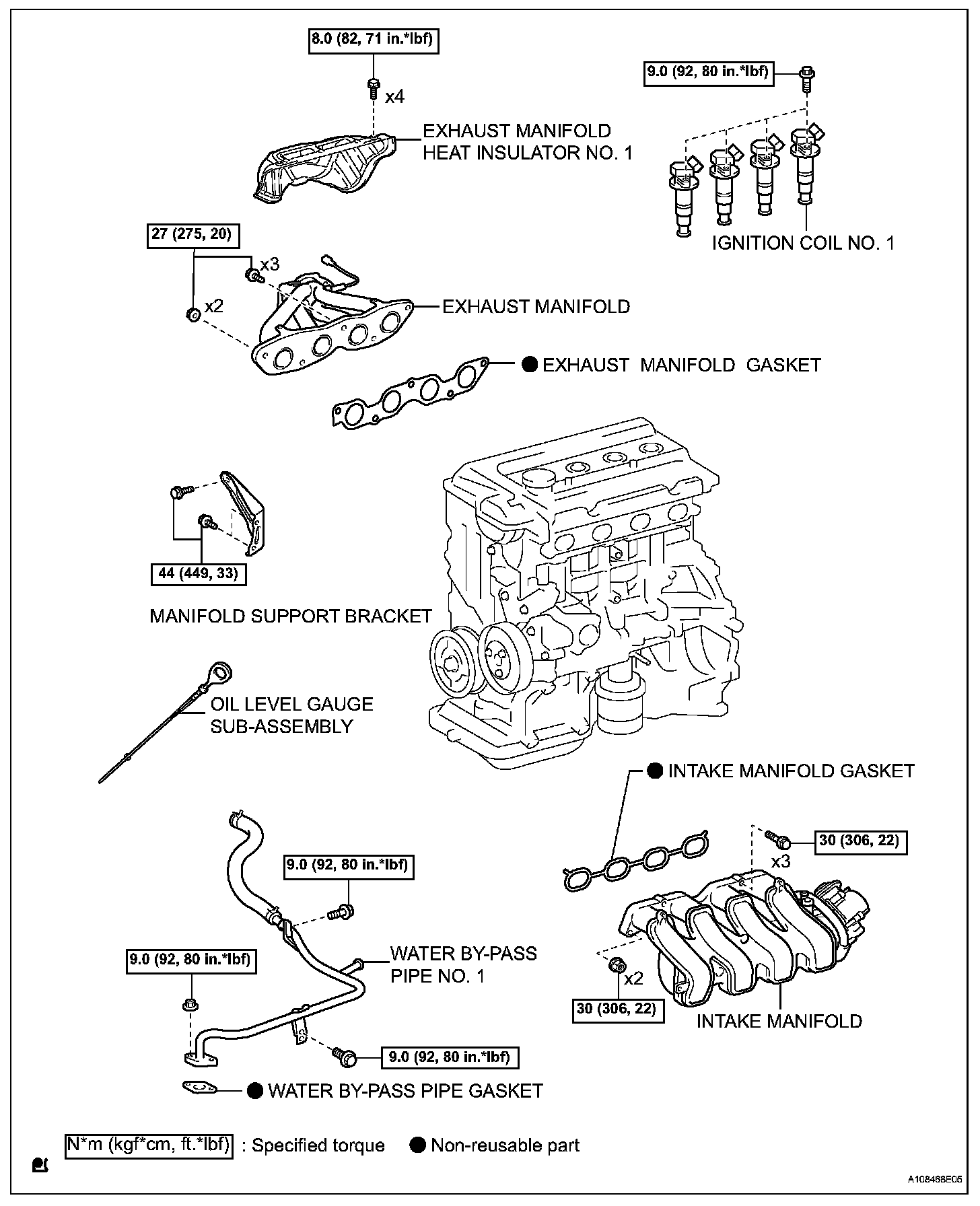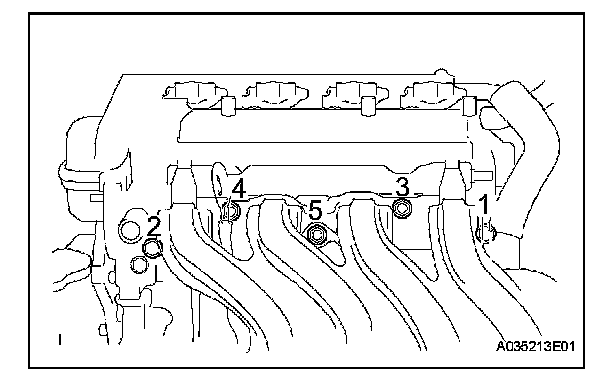 (f) Remove the 3 bolts and 2 nuts in the order shown in the illustration and remove the intake manifold.