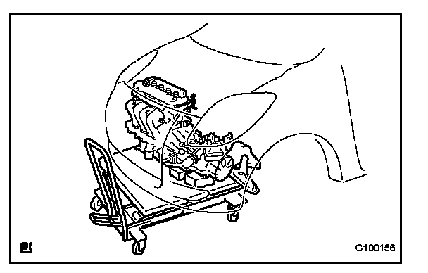 (d) Using an engine sling device and a chain block, suspend the engine assembly with transaxle and front suspension crossmember.