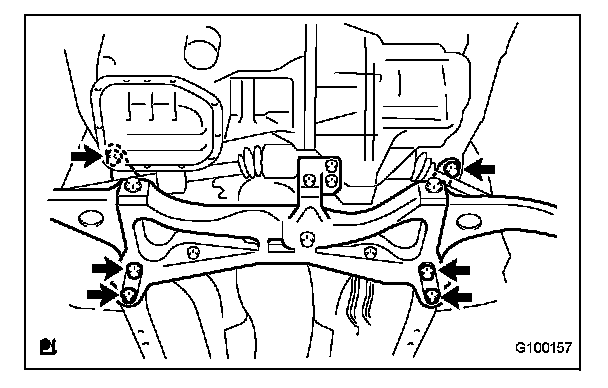 (d) Remove the 6 bolts, and remove the engine assembly with transaxle and the front suspension crossmember from the vehicle.