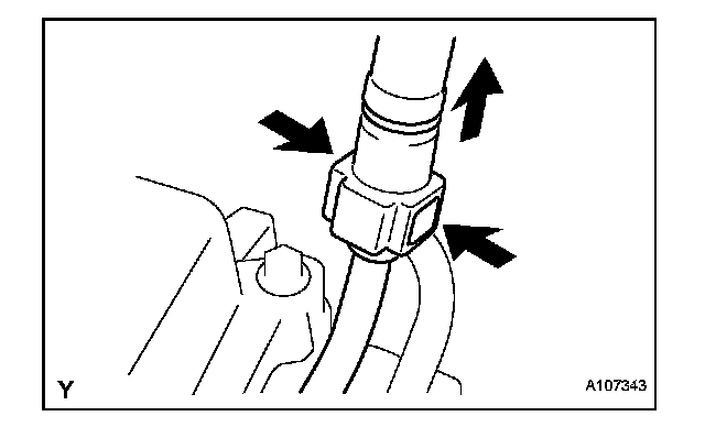 (b) Pinch the fuel tube connector retainer from both sides, disconnect the fuel tube connector and separate the fuel tube from the pipe.