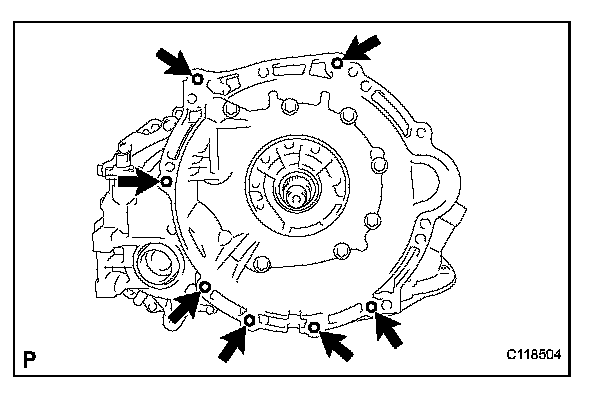 (a) Remove the 7 bolts and remove the automatic transaxle with torque converter.