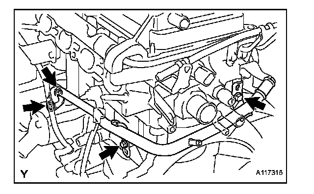 (a) Remove the 2 bolts and 2 nuts and remove water by-pass pipe No. 1.