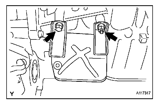(a) Remove the 2 bolts and remove the 2 wire harness clamp brackets.