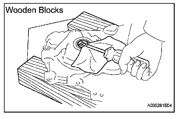 (b) Using a screwdriver with its tip wrapped in protective tape, pry out the oil seal.