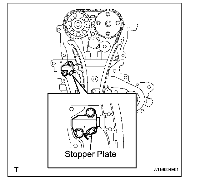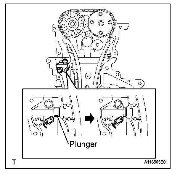 (b) Unlock the plunger of the tensioner and push it in to the end.