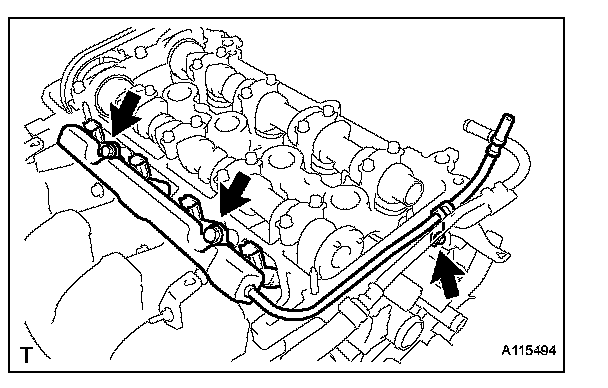 NOTICE: Do not drop the fuel injectors when removing the fuel delivery pipe sub-assembly.
