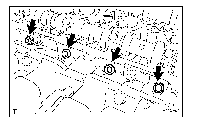 (b) Cover the 4 oil paths of the cam journal with tape as shown in the illustration.