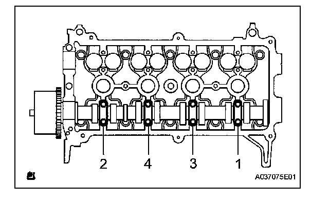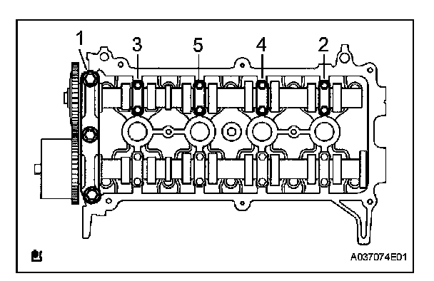 NOTICE: Loosen each bolt uniformly while keeping the camshaft level.