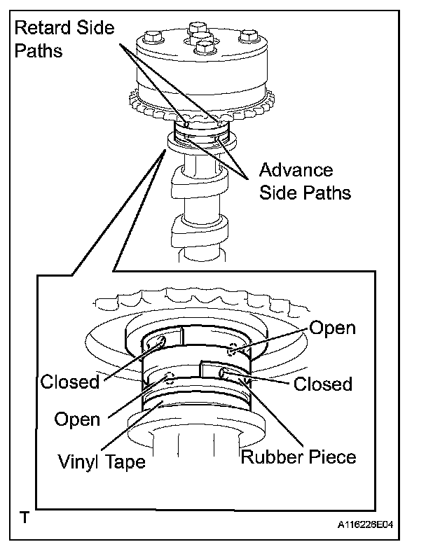 (c) Puncture the tape covering the advance oil path and the retard oil path on the opposite side from the advance oil path.