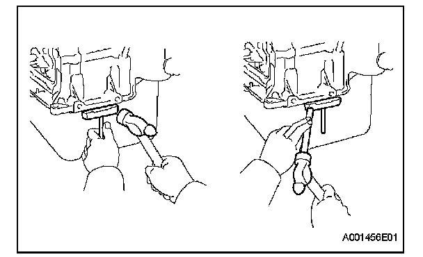 (a) Using a 12 mm hexagon wrench, remove the oil filter union.