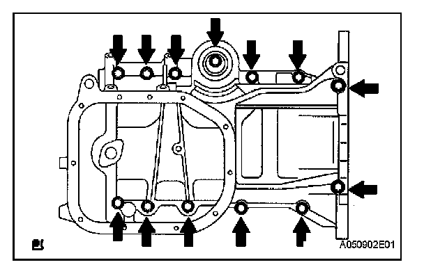 NOTICE: Do not damage oil pan No. 1 or oil pan No. 2.