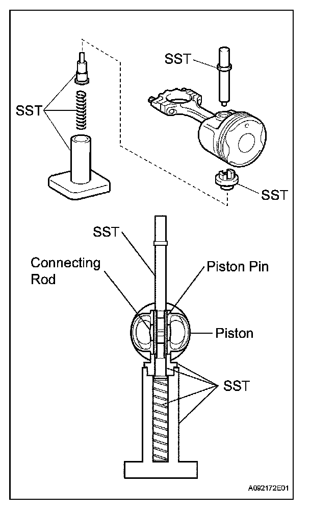 (a) Using a piston ring expander, remove the 2 compression rings.