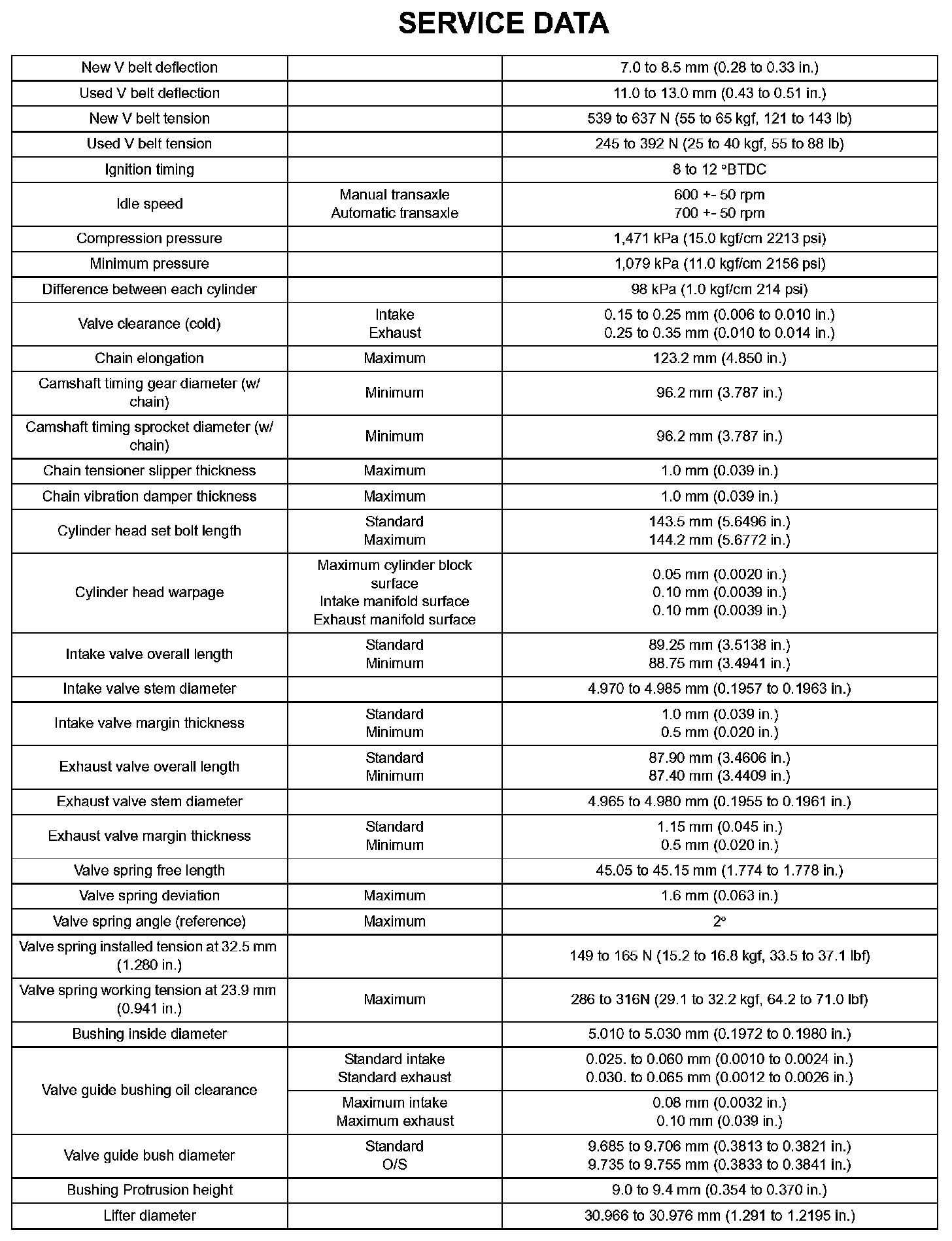Engine Mechanical - Service Data (Part 1):