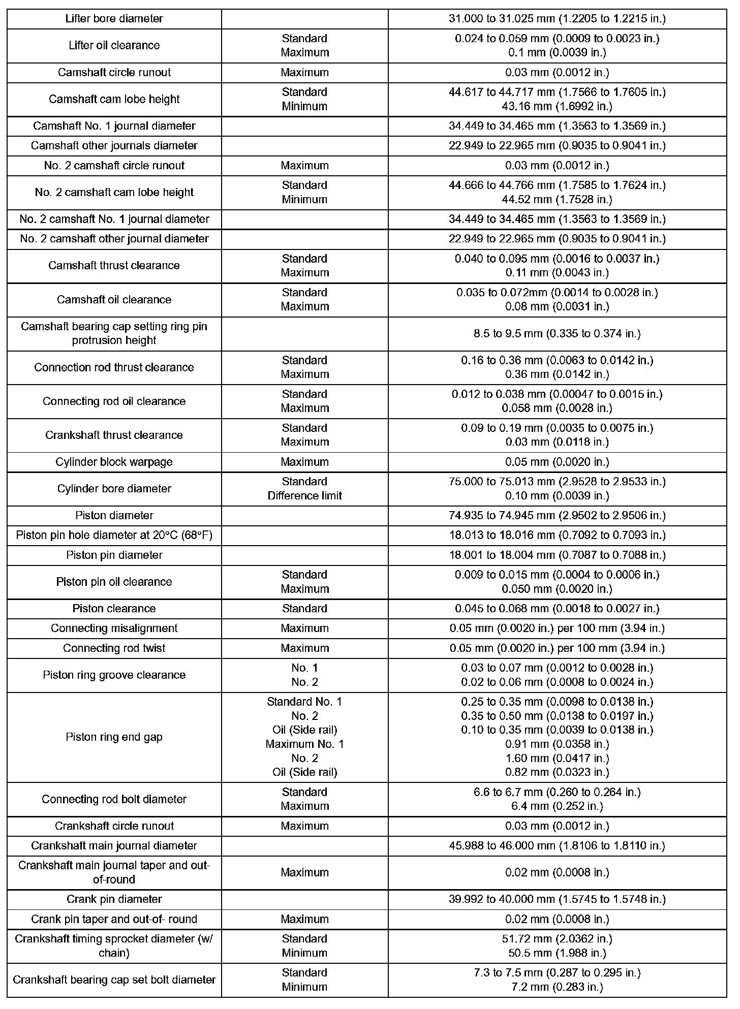 Engine Mechanical - Service Data (Part 2):