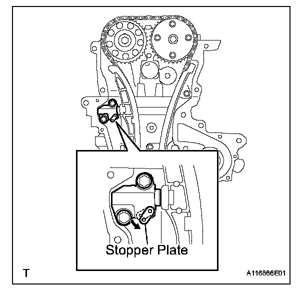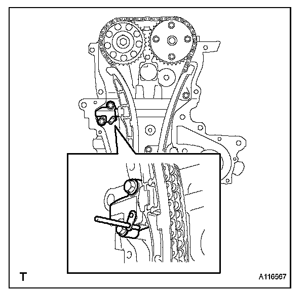 (b) Unlock the plunger of the tensioner and push it in to the end.