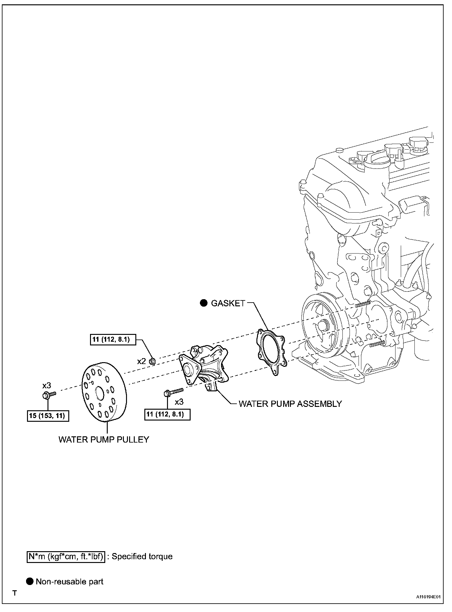 Torque: 15 N*m (153 kgf*cm, 11 ft.*lbf)