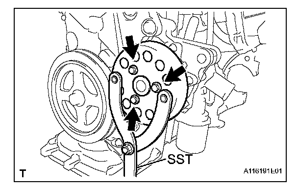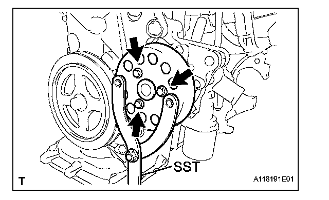 (a) Using SST, hold the water pump pulley.