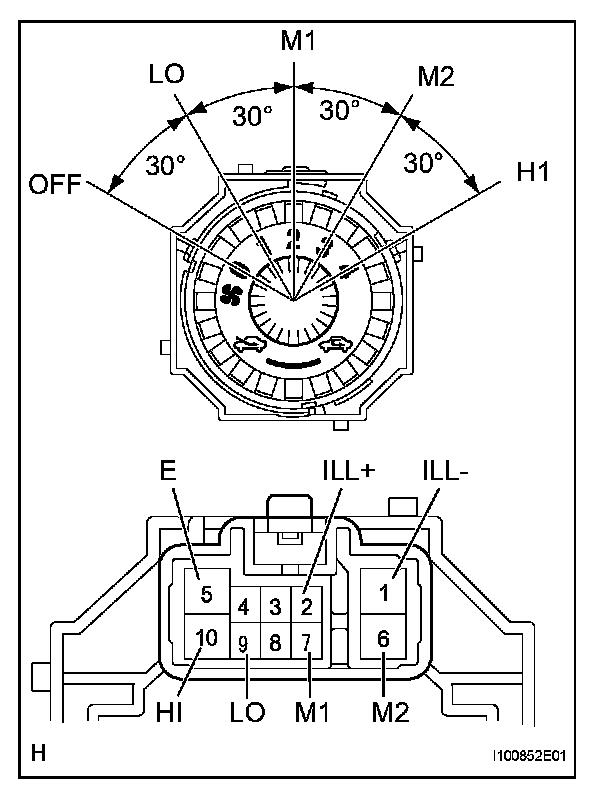 If the result is not as specified, replace the No. 3 heater control knob.
