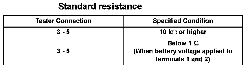 1. Using an ohmmeter, measure the resistance between the terminals.