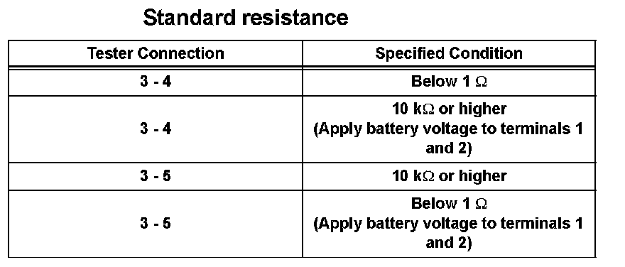 If the result is not as specified, replace the relay.