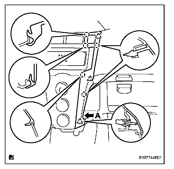 c. Disengage the 3 A claws and remove the instrument cluster finish panel.