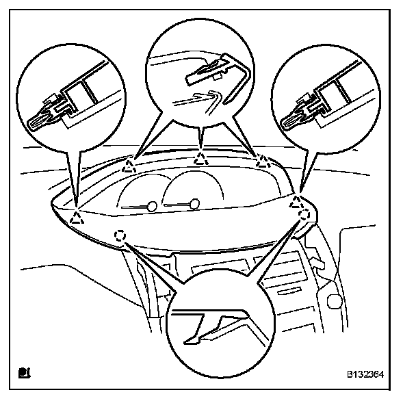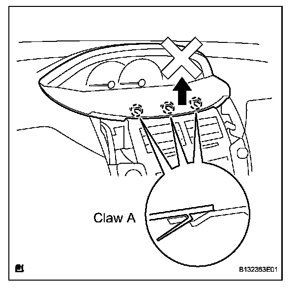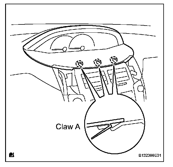 a. Fit the 3 A claws of the instrument cluster finish panel into the upper instrument cluster finish panel center.