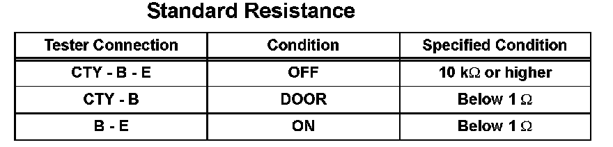1. Connect the positive (+) battery lead to terminal B and the negative (-) battery lead to terminal CTY, then check that the light illuminates when the switch is in the DOOR position.