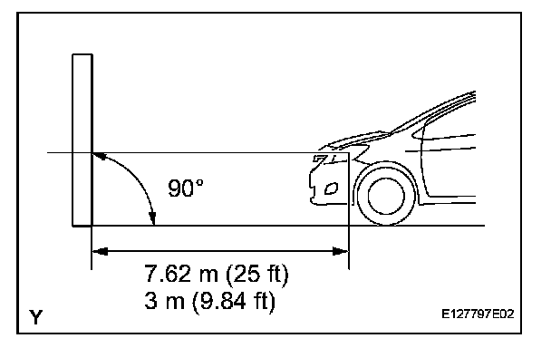 - Keep a 7.62 m (25 ft) distance between the center of the headlight bulb and the wall.