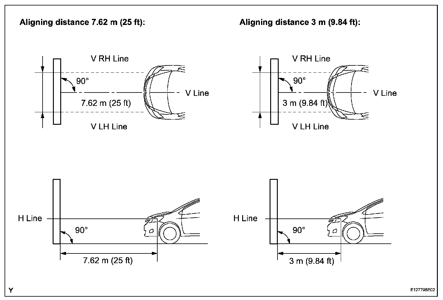 2. V LH Line and V RH Line (Center mark positions of left-hand (LH) and right-hand (RH) headlights):