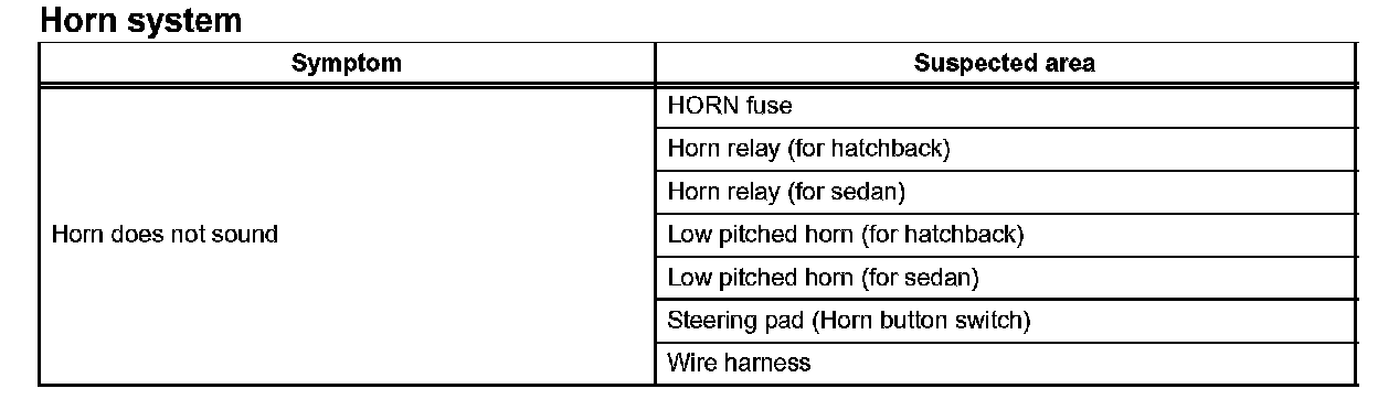 PROBLEM SYMPTOMS TABLEHINT: Use the table given to help determine the causes of the problem symptom. The potential causes of the symptoms are listed in order of probability in the "Suspected Area" column of the table. Check each symptom by checking the suspected areas in the order they are listed. Replace parts as necessary.