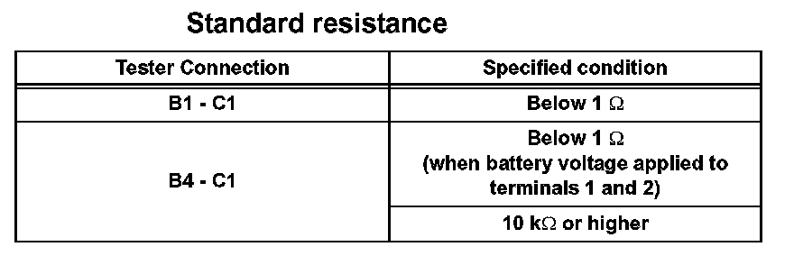 1. Using an ohmmeter, measure the resistance between the terminals.