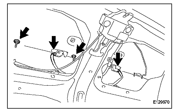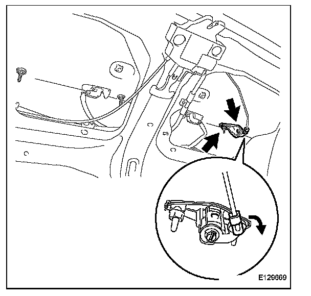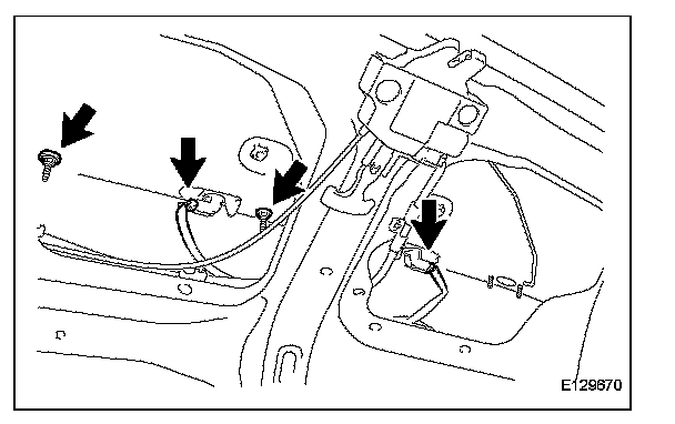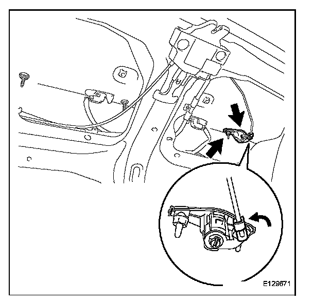 a. Remove the snap ring in the direction indicated by the arrow and remove the luggage compartment door lock link.