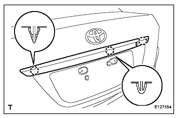a. Engage the 3 claws and install the luggage compartment door outside garnish.
