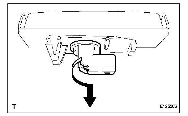 b. Turn the license plate light socket and bulb, in the directions indicated by the arrow in the illustration, to remove them.