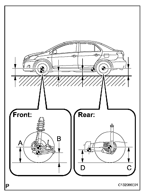 HINT: Bounce the vehicle up and down at the corners to stabilize the suspension before inspecting the vehicle height.