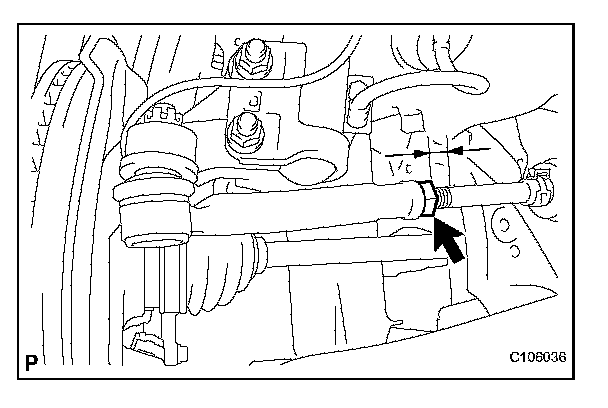 NOTICE: Provisionally tighten the lock nut while holding the hexagonal part of the steering rack end so that the lock nut and the steering rack end do not turn together. Hold the width across flat of the tie rod end and tighten the lock nut.